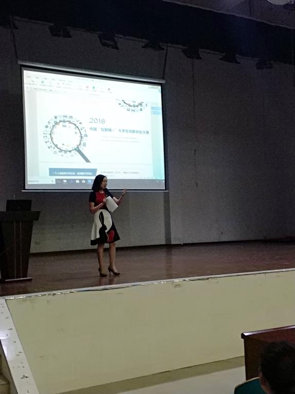 会上,杨晨老师以“互联网+”大赛的参与者和服务者的角色,向同学们介绍了“互联网+”大赛的背景、意义,项目的分类和特点,并结合自身经验告诉大家,作为一名创业者应具有怎样的创业精神、品质,同时鼓励同学们积极参与互联网+创新大赛,开阔创新思维。
