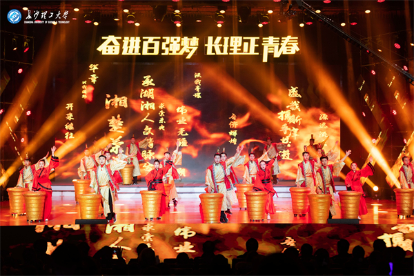 联欢会伊始,融合非物质文化遗产击缶与舞狮,加上现代芭蕾的《鼓韵华章》在《长理赋》的吟诵中磅礴大气开场,瞬间将舞台气氛点燃。
