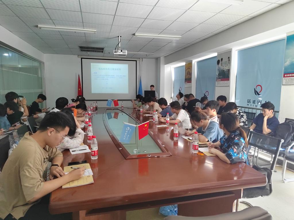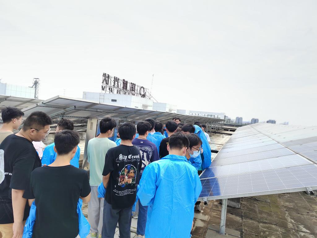 在诺诚光伏,办公室主任袁亚恒和销售总监胡坚分别向同学们介绍了公司的基本情况、光伏产业政策和发展前景。品质主管向同学们介绍了光伏产品的生产流程、设备工艺、主要材料使用情况以及产品质量评价方法等内容。在生产主管的带领下,同学们参观了公司生产车间,对光伏电池片分选、单焊、串焊、叠层、层压、修边、装框、接接线盒、组件测试、装箱等生产环节进行了详细了解,并参观了公司自建的60kw光伏发电站。通过实习,同学们了解了光伏产业对我国“碳达峰、碳中和”战略目标的重大意义,更加坚定了学习新能源材料与器件的专业自信。