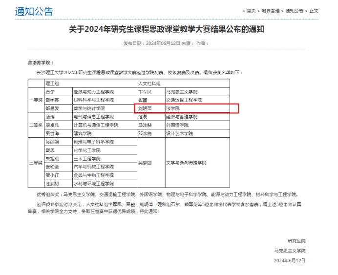 为全面推进研究生课程思政建设,更好服务“三高四新”战略任务。学校决定举办第二届问鼎在线研究生课程思政课堂教学大赛暨第二届湖南省研究生课程思政课堂教学大赛校内选拔赛。我院积极组织教师参加2024年问鼎在线课程思政教学竞赛。