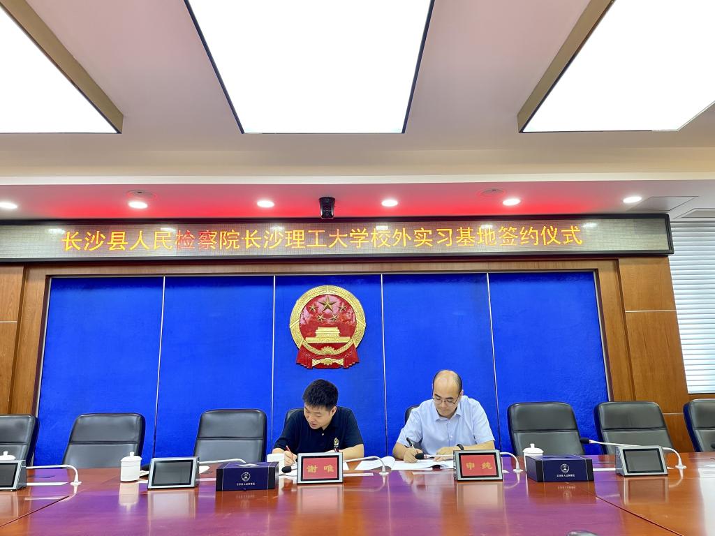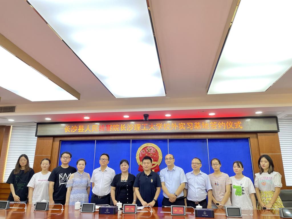 2021年7月9日,长沙县人民检察院与我院校外实习基地签约仪式在长沙县人民检察院前栋五楼会议室举行。长沙县人民检察院党组成员、政治部主任谢唯,第一检察部主任邓昂、副主任唐双燕,我院副院长申纯,教师代表阳明武、刘文莉出席仪式。