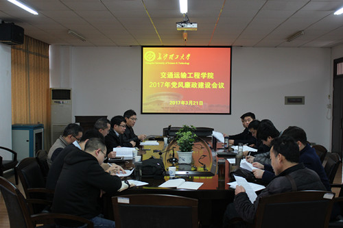 3月21日上午,交通运输工程学院在云塘校区工科二号楼B-413室召开学院党风廉政建设专题工作会议,学院领导班子成员、院属二级单位主要负责人参加了会议。会议由院党委书记胡庆国主持。