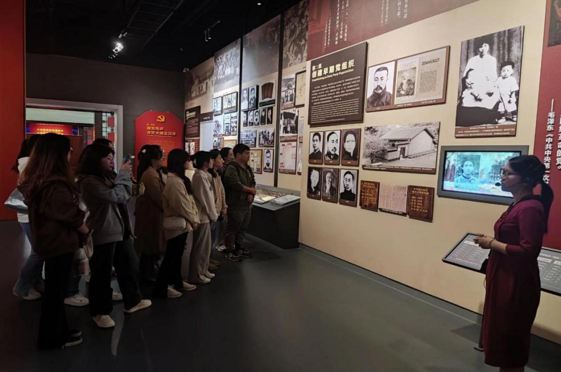“能够想到给工人上‘夜校’学知识,毛主席真了不起”,在参观到“毛泽东在新河工人夜校给工人讲课”部分时,同学们纷纷感叹道。展厅内,每一件展品、每一幅图片、每一段文字都诉说着那段波澜壮阔的历史,党员们在讲解员的引导下,详细了解了长沙革命历史背景、重要事件和英雄人物,通过实物展示和背景了解,全体党员对长沙地区在中国革命历史中的重要地位有了更深刻的认识。