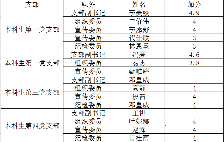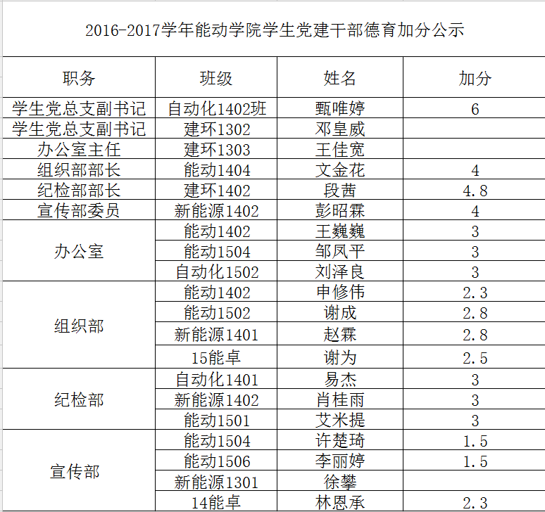 2016-2017学年能动学院学生党建干部德育加分公示