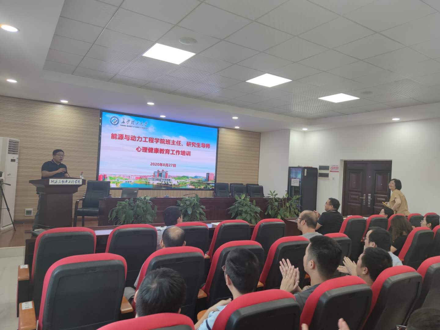 为了普及学院班主任、研究生导师心理健康知识,提高工作能力,8月27日下午,能源与动力工程学院在新能源大楼二栋504开展了心理健康教育工作培训。培训由学校心理健康中心主任龚勋主讲,学院党委副书记靳攀科主持,学院党委副书记(主持工作)成华、全体班主任和研究生导师参加。