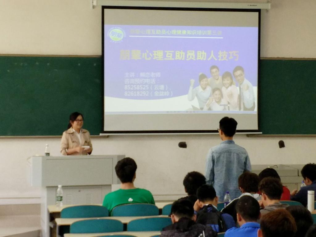 4月17日14:00,在综合教学楼A105,能动学院邀请到心理中心熊恋老师开展心理健康知识讲座。讲座的主题是“朋辈心理互助员助人技巧”,学院130余名朋辈心理互助员聆听了讲座。