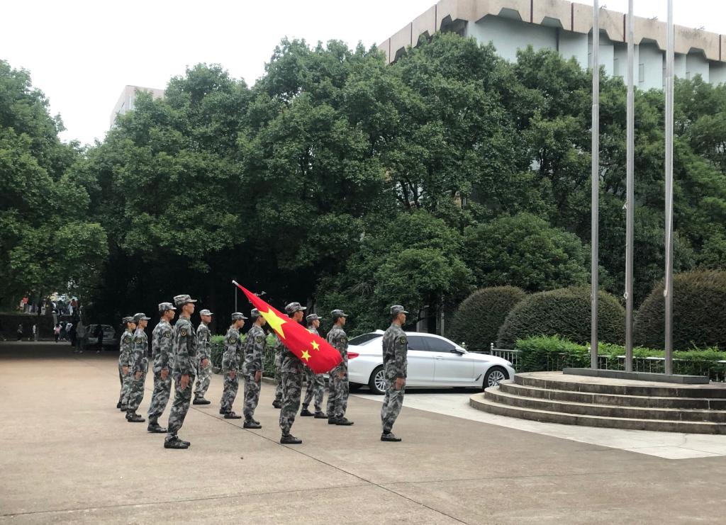 在仪式开始前,全体同学合唱了两支军训时期经常唱的红歌,开启新一天的学习与生活。不远处,国旗班的同学们唱着响亮的歌声、迈着整齐坚定的步伐走来,瞬间吸引了全体同学的注意,国旗在大家响亮的国歌声中冉冉升起,尽管气温偏低,但大家的内心温暖且充满力量。接下来,全体同学在国旗班班长的带领下,进行宣誓,字字铿锵,代表着大家对未来四年的期许与承诺。