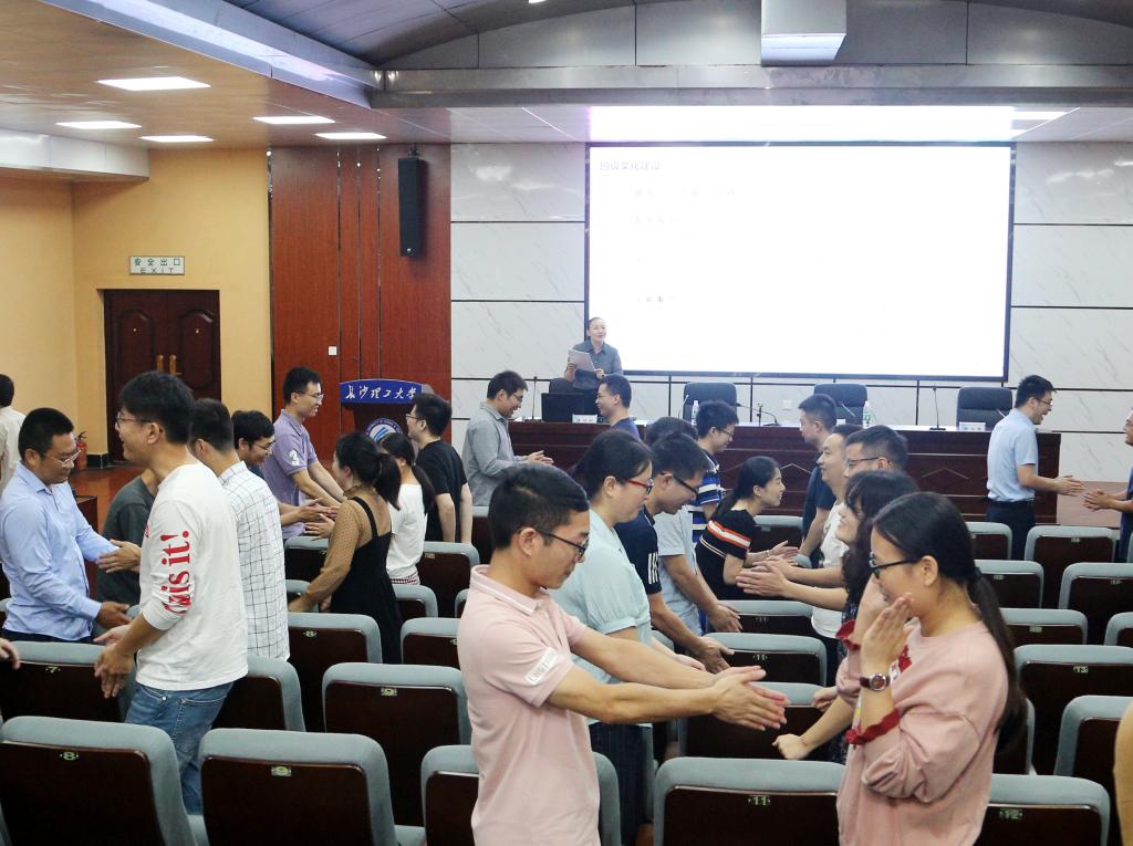 姚新良首先祝贺新入职教师人生第一个暨第36个教师节快乐,并结合自身经历分享了完成从学生身份向教师身份角色转变的经验。他强调,教师岗前培训是促进新入职教师早日进入教师角色、更好地履行岗位工作所采取的一项重要举措,希望新入职教师高度重视岗前培训工作,加强师德师风修养,正确处理好工学矛盾,严格遵守岗前培训各项规章制度,认真参训,诚信应考,做一名合格的高校教师。