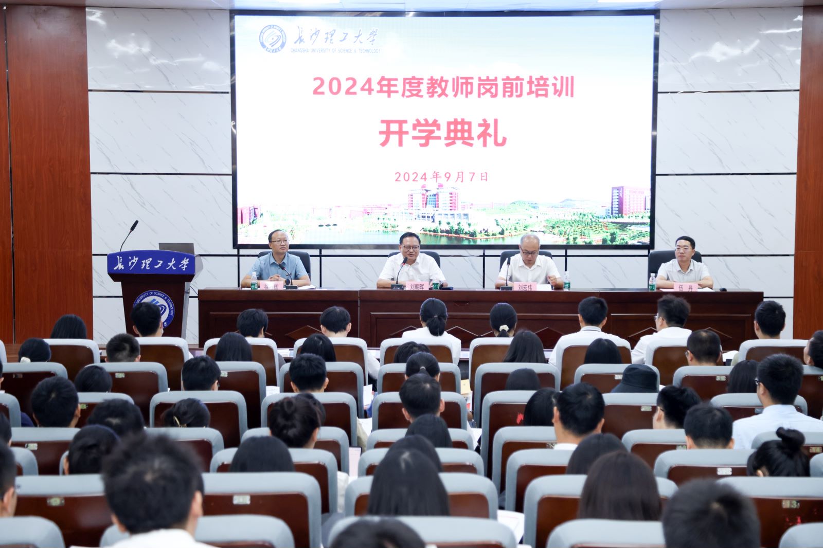 9月7日上午,问鼎在线(中国)2024年新进教师岗前培训开学典礼在金盆岭校区四号教学楼报告厅举行。学校党委委员、副校长刘朝晖出席讲话并讲授第一课。人事处处长(教师工作部部长)刘宏伟等人事处相关负责人、138名培训班学员参加开学典礼。开学典礼由人事处副处长(教师工作部副部长)徐欣国主持。