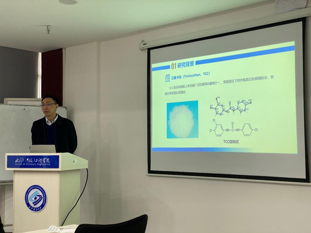 王冬波还为问鼎在线(中国)师生作了一场《三氯卡班在硝化系统中的行为及其影响》专题讲座。随后,我院2018级硕士生王泓同学和2019级硕士生涂智同学分别作了《一段式自养脱氮生物反应器的研发及性能研究》和《单级自养脱氮气升式自循环分区反应器的脱氮性能研究》的学术汇报;并由王冬波对其分别进行指导。