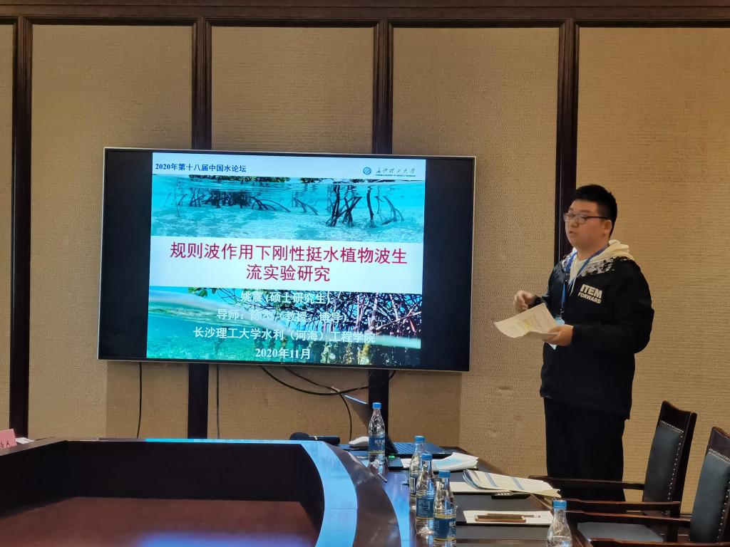 我院青年教师朱博渊做了题为“流域减沙条件下感潮河道动力界面上下游区段冲淤差异”学术报告,我院博士研究生闫世雄做了题为“渌水流域城市扩张的洪水响应研究”,硕士研究生罗舸旋子做了题为“极端条件下涔天河水库溃坝风险及应急预案”学术报告,硕士研究生姚震做了题为“刚性挺水植物在规则波作用下波生流特性试验研究”学术报告。