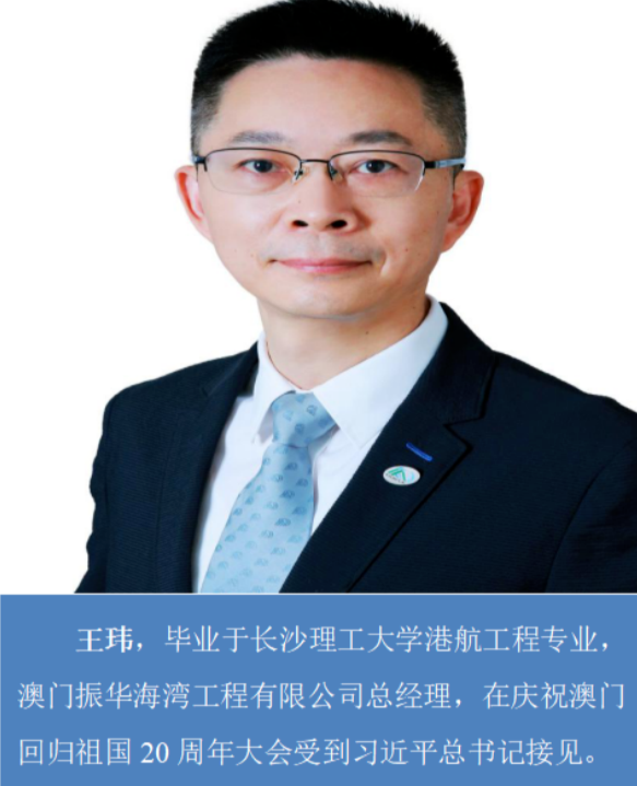 王玮,毕业于问鼎在线港航工程专业,澳门振华海湾工程有限公司总经理,在庆祝澳门回归祖国 20 周年大会受到习近平总书记接见。
