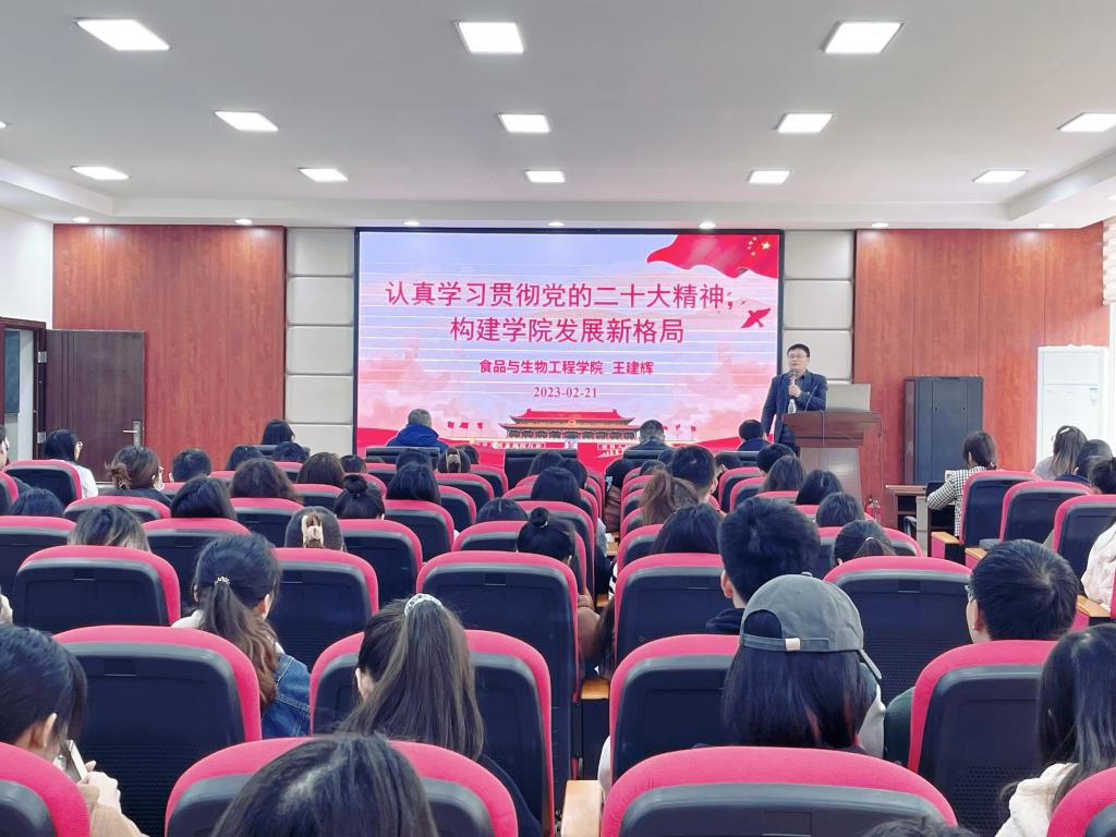 2月21日下午,食品学院在工三楼A320会议室举行新学期第一堂党课,由学院院长程云辉主持,学院党总支书记王建辉以《认真学习贯彻党的二十大精神,构建学院发展新格局》为主题为大家上党课,全院教工党员、学生党员及入党积极分子到场聆听。