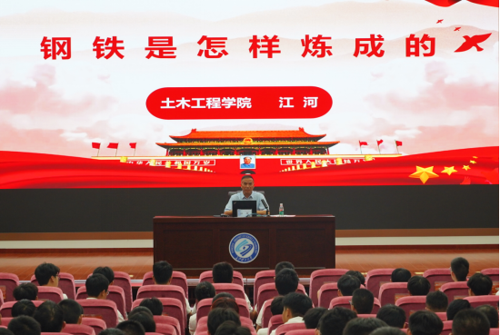 江河围绕“钢铁是怎样炼成的”的主题,以五位不同时期的共产党员的先进事迹,激励大家牢记初心使命,坚定理想信念。他以朱德入党到成为人民军队总司令的浴血磨砺历程来勉励新生信仰坚定,信念如钢,初心如磐;以习近平总书记插队落户陕北的知青体验历程来鼓励新生把握时代机遇,将个人抱负与国家发展、民族复兴紧密结合;以学院张建仁教授为师、为学、为人的不懈奋斗来鼓舞新生忠于职守,爱校荣院,肩负起“土垒天下,木承苍穹”的责任与担当;以学院韩艳教授成为“追风人”的青春奋斗之歌引导新生脚踏实地,志存高远,肩负起“风雨兼程,砥砺前行”的使命与担当;以学院优秀校友谭松梨成长的不凡轨迹希望新生追求卓越、享受学习科研生活。江河寄语全体2024级研究生:以学习为本,以兴趣为基,以实干为要,练就过硬本领,报效伟大祖国,开启令人憧憬的青春之旅,不负长理、不负韶华、不负时代。