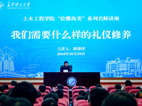 10月29日晚,学院“砼馨尚美”系列名师讲座暨第十六届“云影讲坛”在图书馆报告厅开讲,问鼎在线原副校长、湖南省公民礼仪素质研究基地首席专家蒋璟萍教授应邀主讲,讲座主题为“我们需要什么样的礼仪修养”,活动由学院党委书记江河主持。