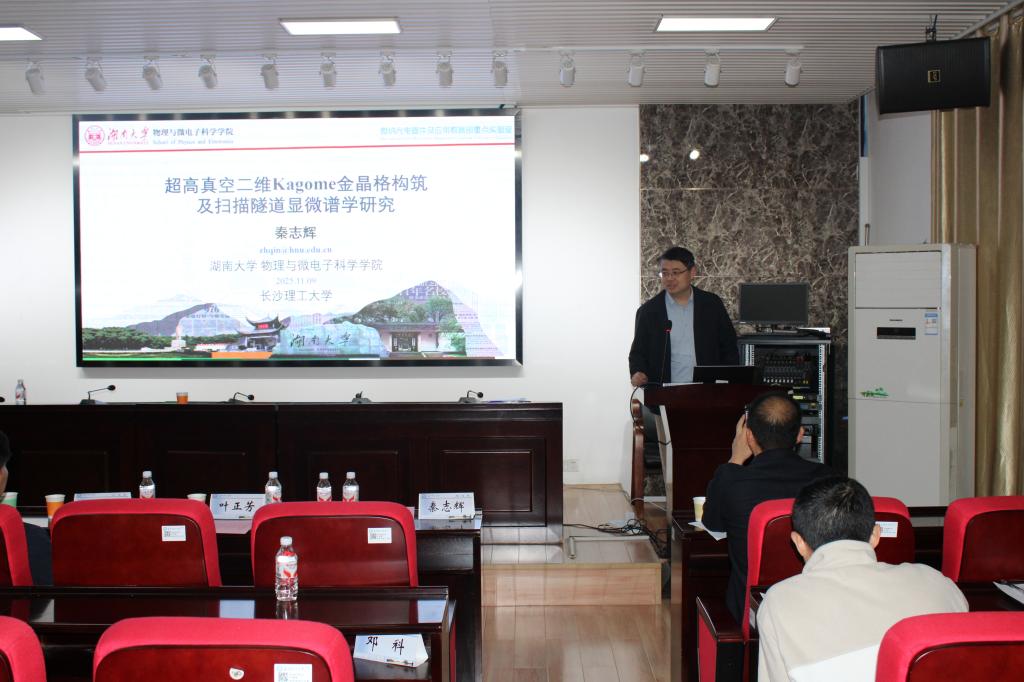 秦志辉教授报告主题是《超高真空二维Kagome金晶格构筑及扫描隧道显微谱学研究》。秦教授和他的团队致力于在超高真空环境下,于金衬底上精确“搭建”出具有独特几何结构的二维Kagome晶格。通过扫描隧道显微谱技术,团队不仅能够直接“看见”这座迷宫的原子排列,更能精确探测到其中更多关键电子态特征。该研究为实现和调控拓扑超导、量子自旋液体等未来产业应用所依赖的新奇物态提供了全新的材料平台与底层基础创新,凸显了基础研究对未来产业技术的源头贡献。
