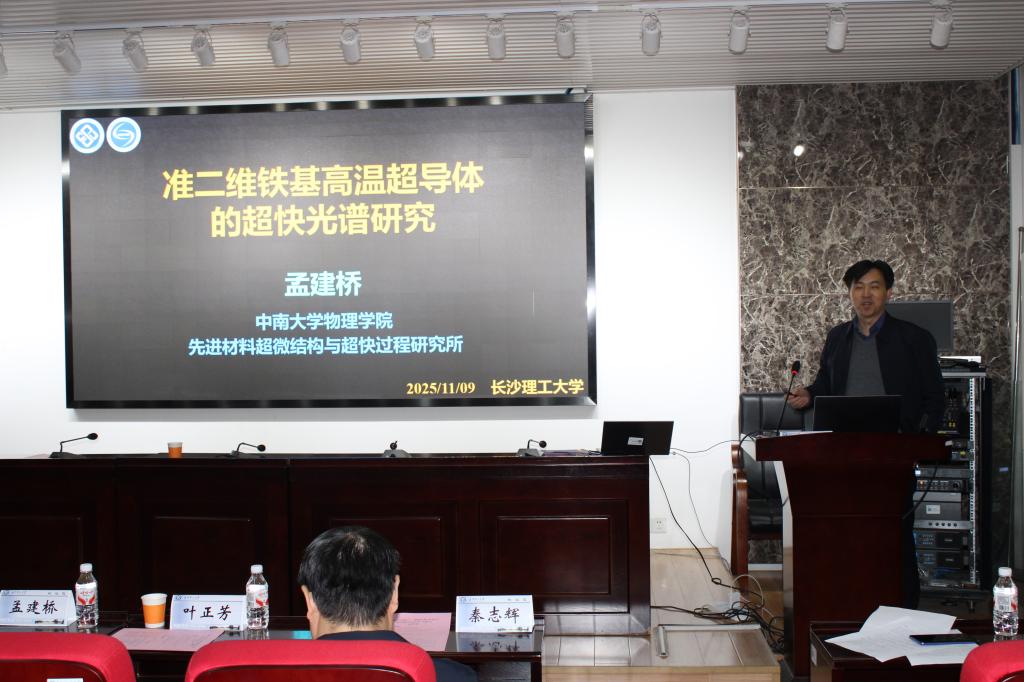 孟建桥教授以《准二维铁基高温超导体的超快光谱研究》为主题作了专题报告。孟教授的研究聚焦于揭示高温超导体中奇异电子态的“瞬时影像”。其团队运用超快光谱这一强大工具,如同对材料进行“超慢动作拍片”,能够精确追踪在激光激发下,铁基超导材料中电子配对、序参量演化的超快动态过程,为理解高温超导的微观机理提供了关键动力学证据。这些原子级精度的操控技术,不仅深化了人们对二维半导体物性调控的理解,也为开发下一代高速光电器件和低能耗电子器件奠定了坚实的材料科学基础。