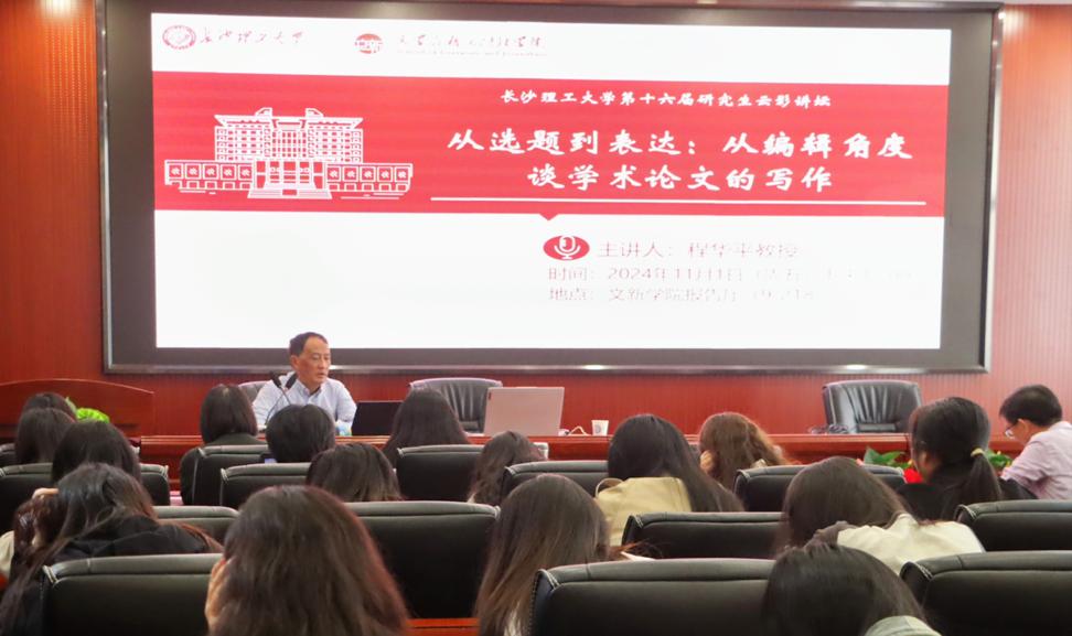 为全面提高我院研究生学术论文写作水平,帮助师生理解各大期刊评审流程从而提高学术论文通过率,11月1日下午,我院金盆岭校区9教218报告厅举办了以“从选题到表达:从编辑角度谈学术论文的写作”为题的学术讲座。华东师范大学中文系资深教授程华平主讲,文学与新闻传播学院部分教师与研究生参加。