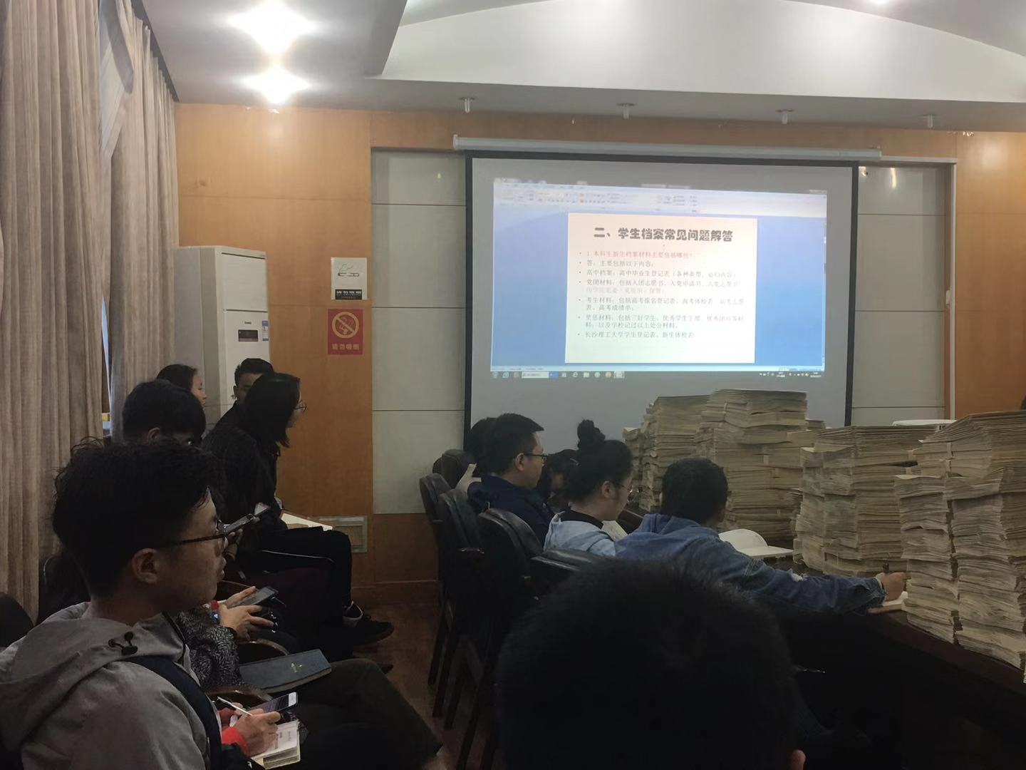 学生档案室主任尹瑛介绍了学生档案工作的重要性和法律性,强调学生档案工作要规范化、制度化,并通过系列活生生的具体案例,对学生档案怎么建档实际操作过程进行了详细讲解,使辅导员(兼职档案员)能够更快地熟悉学生档案业务,更加重视学生档案工作。