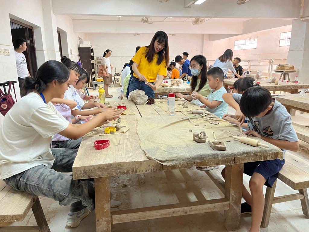 各学院工会依托自身专业优势,各出妙招,为孩子们制定了丰富有趣的特色课程内容,让孩子们在玩中学、学中乐、乐中思。艺术学院分工会组织职工子女们一起玩泥巴:通过泥塑器皿、泥条盘筑、泥板成型等了解初步感受泥的性质,感受陶艺魅力;汽机学院分工会组织职工子女们一起玩赛车:通过方程式赛车结构展示和动态表演,进行汽车科普,感受汽车文化;食品学院分工会组织职工子女们一起动手做蛋糕,小小糕点师、烘焙俱乐部、创新手工绘画等课程深受小朋友的喜爱;建筑学院分工会开展“童心筑梦爱心托管”国庆主题日活动:开展红色建筑绘画与模型制作,小朋友学习红色建筑背后的历史故事,亲手制作红色建筑模型,描绘祖国的大好河山;物电学院分工会、水利学院分工会、图书馆分工会分别开展“小小科学家”科普教育、“喜迎二十大·科普向未来”节水湖南科普主体宣传活动、科幻电影……