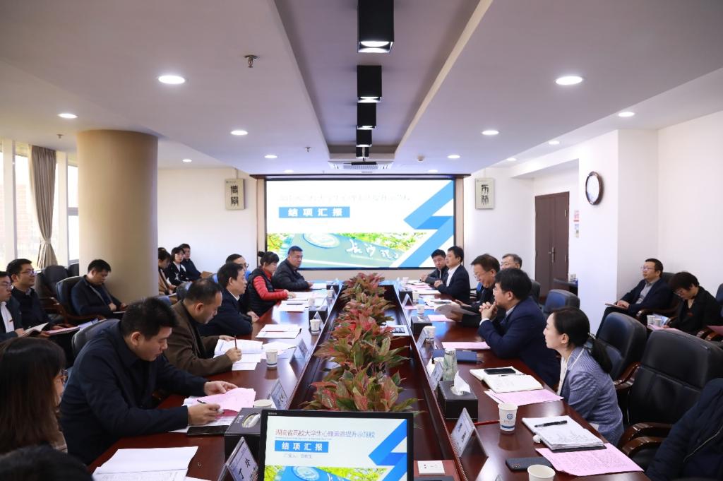 项目负责人谈传生副校长代表项目组从项目建设依据、思路、措施、内容、推广、反响六方面向专家作结项汇报。他说,在学校党委的坚强领导下,一方面积极完成对标建设,另一方面围绕心理中心的专业化建设、二级学院心理健康教育的标准化建设、三维质控建设三个方面积极开展提升建设。项目建设五年来,工作成效显著,获得三个省级平台,《中国教育报》、《湖南日报》、《湖南卫视》、《湖南教育》、《湖南教育快讯》对问鼎在线(中国)心理健康教育工作进行了专题报道。