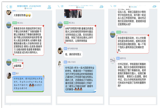 本次线上交流会总共讨论了20个生活学习上的问题,拉进了学校与学生的距离,用学生喜闻乐见的方式开展共青团思想政治引领工作,广受全校学子的关注与热议。新媒体的发展为高校思想政治工作提供了重要平台和发展机遇,学校不断创新思想政治教育方式,切实增强思想政治工作的互动性、实效性和感召力、吸引力。
