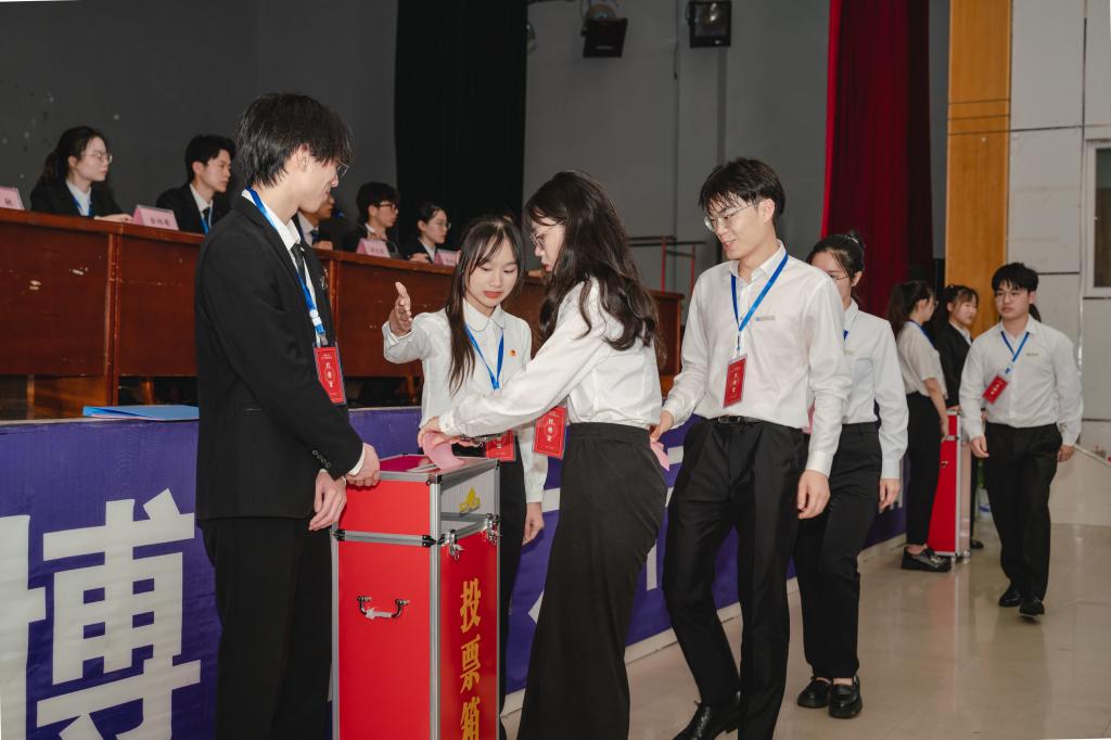 下午16:00,第十一次学生代表大会圆满完成各项议程,在学生活动中心科技报告厅胜利闭幕。全体与会代表表决通过了《问鼎在线第十届学生会工作报告(审议稿)》、大会常任代表名单、《问鼎在线学生会章程(修订稿)》。闭幕式前,大会进行了第十一届学生会主席团及学生代表大会常任代表选举。大会在《中国共产主义青年团团歌》声中闭幕。