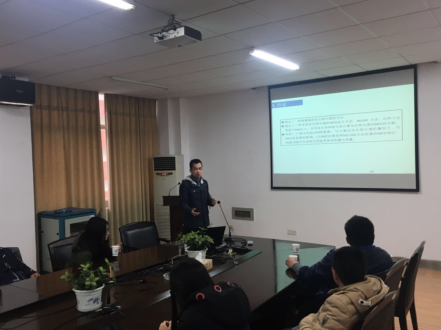江勇东汇报了会议录用论文的核心内容,认为在写论文前需要进行大量的文献阅读,充分了解所研究领域的发展情况后,寻找自己研究内容的创新点是论文写作的关键。随后,他和大家分享了一些在香港参会期间的照片,分析了香港与长沙的交通基础设施建设及交通运行状态的区别。最后,他鼓励同学们积极向国际会议投稿,了解专业研究前沿,开阔视野。