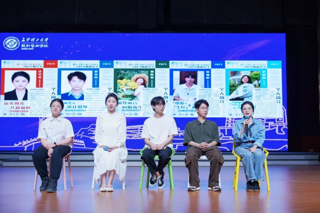 针对会前调查问卷结果集中性反馈的问题,开展“学长话前程圆桌论坛。论坛聚焦艺术类学生学业发展、职业发展热点,邀请研究生代表刘晓茹、罗敬暄、史心雨、舒尔豪与本科生代表汪芸菲分别从社会实践、学科竞赛、创新创业、学业学习、求职方法等方面专题分享,并与2023级学生面对面交流。