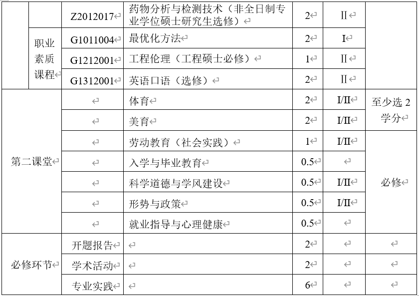 注:学生至少获得第二课堂5学分方可毕业。第二课堂学分认定见《问鼎在线研究生第二课堂学分管理办法》。其中,体育和美育类课程一共2学分,劳动教育(含社会实践)1学分,科学道德与学风建设0.5学分,形势与政策0.5学分,入学与毕业教育0.5学分,就业指导与心理健康教育0.5学分。