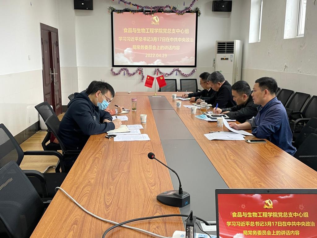 2022年4月29日上午,学院党总支理论学习中心组在工三楼A349会议室组织集中学习,传达学习了习近平总书记近期重要讲话文章指示批示以及两个《专题学习》内容。本次集中学习由院党总支书记王建辉主持,院领导班子参加学习。