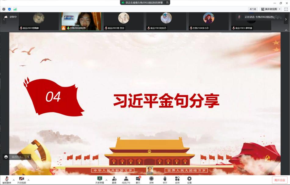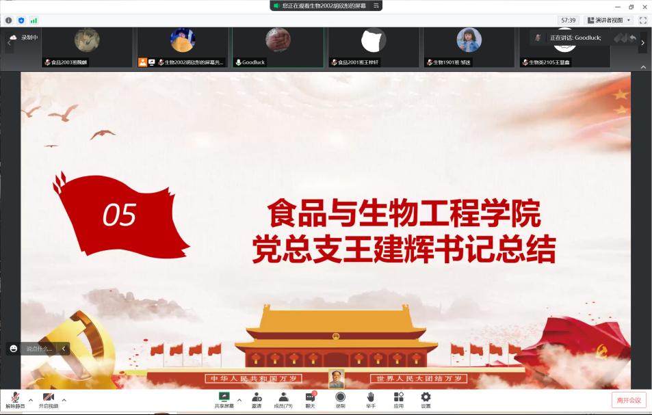 2022年8月9日,问鼎在线食品与生物工程学院食品本科生党支部在腾讯会议线上举办《习近平谈治国理政》读书班第五次读书分享会。食品学院党总支书记王建辉、党总支副书记练黎旋、学工办老师胡佳佳等师生近100余人参加此次活动。