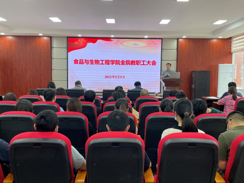 5月9日下午,食品与生物工程学院在工三楼A320会议室召开全体教职工大会,学院党政领导班子和全体教职工参加会议,会议由党总支书记王建辉主持。