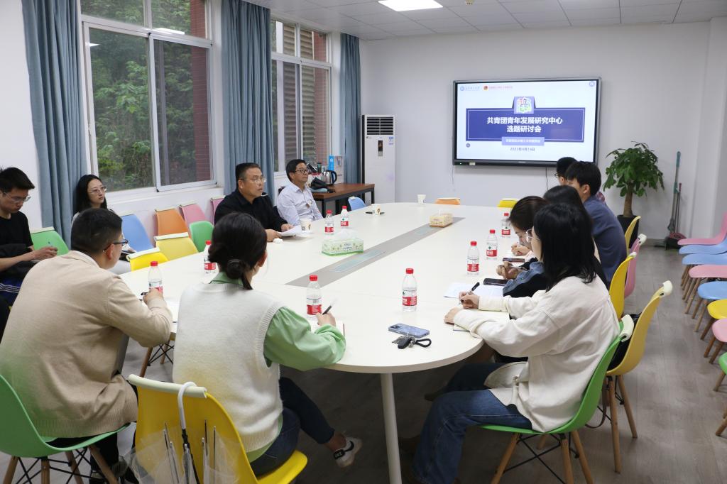 在交流研讨环节,彭怡峰分享了青年发展研究中心的拟选题方向。为此,陈浩凯指出,课题选择要做好调查研究,围绕如何巩固党执政青年基础进行选题,不断提升共青团工作的引领力、组织力、服务力和大局贡献度。袁云才指出青年研究工作要结合各学院特色工作实际,切勿盲目求“大”,要踏实找“小”,以小见大,用理论指导实践,用实践论证理论此外,与会人员就如何选题、如何策划、如何调研、书写注意事项等问题进行了讨论。