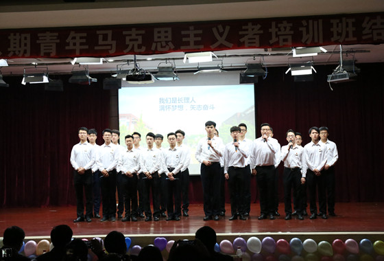 伴随着中国共产主义青年团团歌的响起,结业典礼正式拉开帷幕。音诗画《一封情书》带我们重温了炮火纷飞的年代里那催人泪下的感情故事;歌伴舞《社会主义有点潮》也让在场各位感受到了社会主义的新气象以及新发展;由校院两级学生会主席带来的《我们都是长理人》,将长理精神与人才培养融入朗诵中,抒发了青年骨干爱校荣校的深情厚谊;话剧《此时此刻》讲述了问鼎在线(中国)校友在南沙填海建岛的感人故事,将整场晚会气氛拉向了高潮。结业典礼的节目都由青马班学员自导自演,表演内容丰富、形式多样,引导着青年学子立志报国,将青春热血挥洒于祖国大地。精彩的表演赢得了现场观众阵阵掌声和一致好评。谈传生副校长为本期培训班33名优秀学员颁发了荣誉证书,结业典礼在《我爱你,中国》的歌声中落下了帷幕。