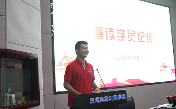 第九期青马班学员代表、第十期青马班第二组学员数统学院陈若晨进行了发言,他分享了自己眼中的青马班,让新学员感受到了校青马班课程并不是刻板印象中的厚重,而是充满青春活力的。随后,第十期青马班班主任助理,校学生会主席向凯鸿向新学员们宣读了学员纪律,并对新学员们送上了美好的祝愿。