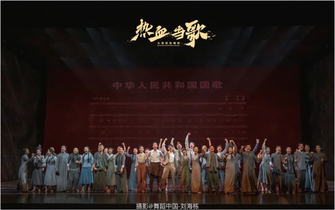 《热血当歌》是为庆祝中国共产党成立100周年、纪念五四运动102周年,在省委宣传部的精心指导下,湖南省演艺集团、共青团湖南省委联合打造了红色题材民族舞剧。该剧以湘籍共产党员田汉以及安娥、聂耳等历史人物创作《义勇军进行曲》为背景,经过长期创作和4个多月的精心排练,于今晚进行全省巡演的首场演出。演出现场,青年舞蹈家张傲月、黄龙标、窦率方分别饰演田汉、聂耳、安娥,倾情演绎了他们面对国家内忧外患、自身遭受种种挫折和深深震撼之后,毅然加入中国共产党,在险恶的环境中坚持创作,为劳苦大众和抗日救亡发声的故事。精彩的演出不时引发观众的阵阵掌声。演出最后,随着激昂的《义勇军进行曲》响起,观众全体起立,同唱国歌,演出在庄严又感人的氛围中结束。
